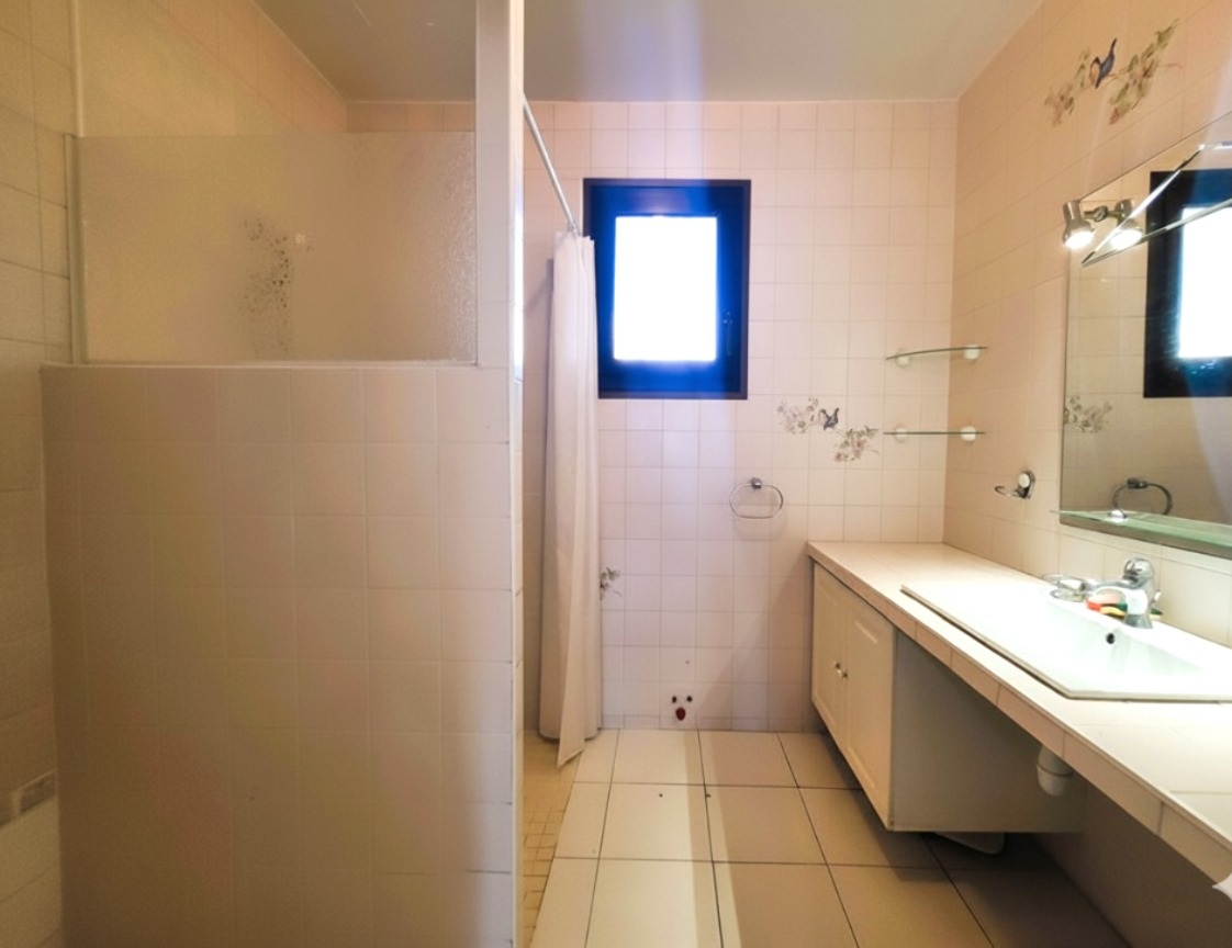 Die Immobilie verfügt über eine geschlossene Doppelgarage, einen Parkplatz und zahlreiche Einbauschränke. Die Wohnung befindet sich in gutem Zustand und ist mit Doppelverglasung, Rollläden und einer Klimaanlage ausgestattet. Eine Renovierung ist erforderlich, um das gesamte Potenzial der Wohnung auszuschöpfen.