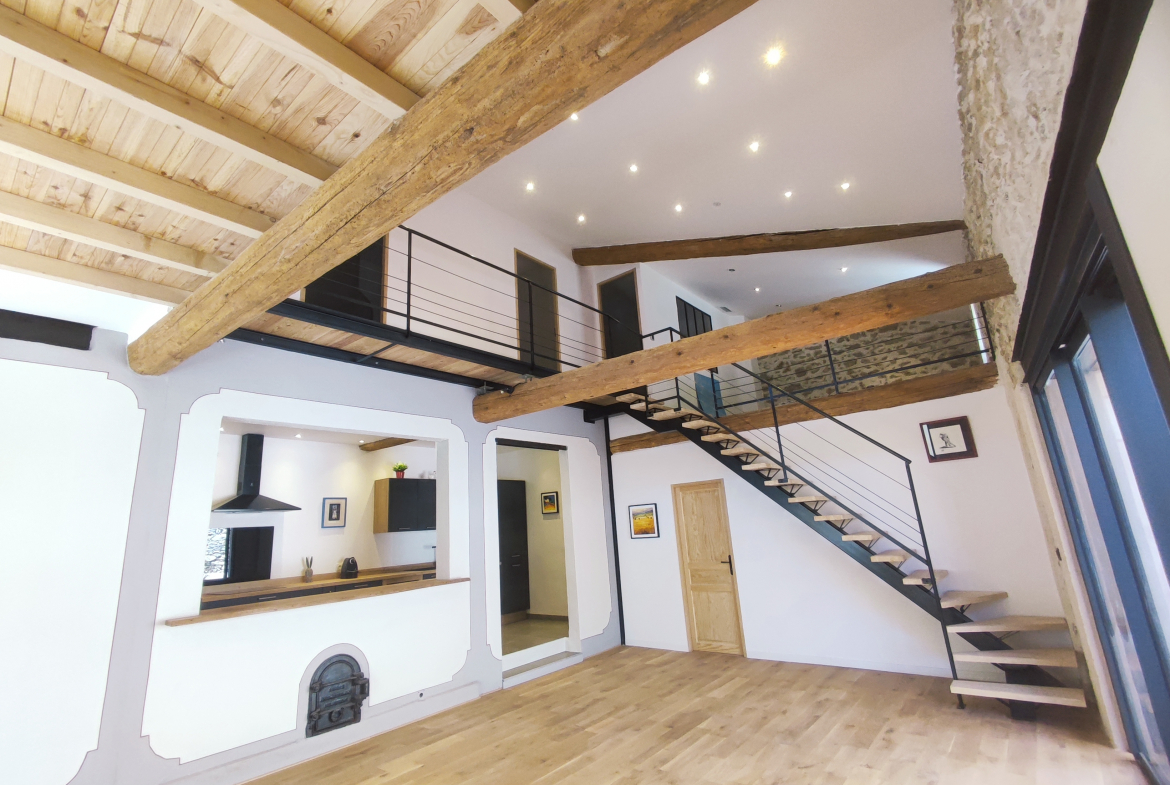 Im Herzen von Marcorignan (Département Aude) gelegen, bietet dieser wunderschöne, 145 m² große ehemalige “Weinkeller”, der mit hochwertigen Materialien im Loft-Stil renoviert wurde, ein außergewöhnliches Wohnambiente.