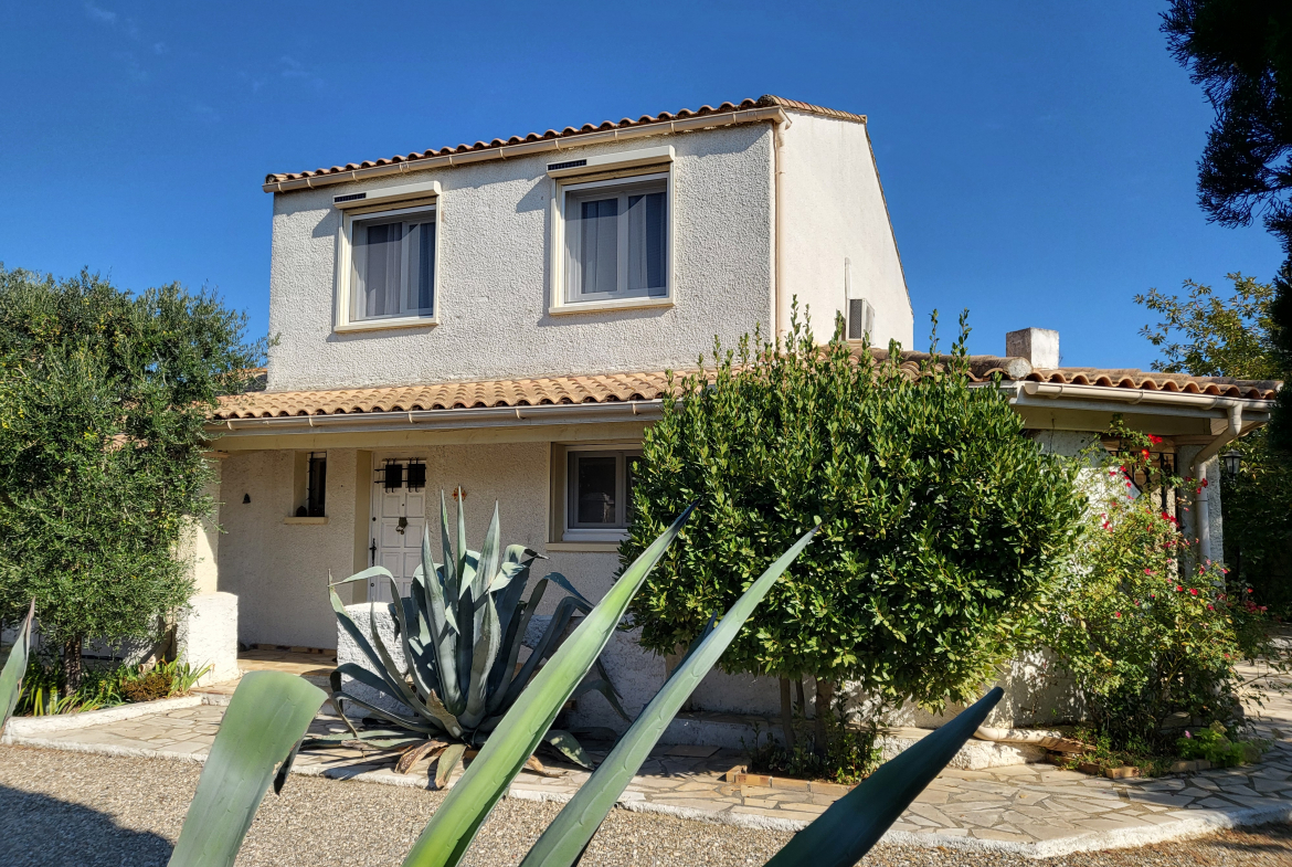 In ruhiger Lage von Sauvian (34410), nahe dem Meer, Béziers und der Autobahnanbindung, befindet sich dieses freistehende Einfamilienhaus mit ca. 100 m² Wohnfläche, gebaut auf einem vollständig eingezäunten Grundstück von 606 m² – ohne direkte Nachbarn und mit freiem Blick.