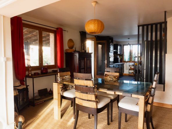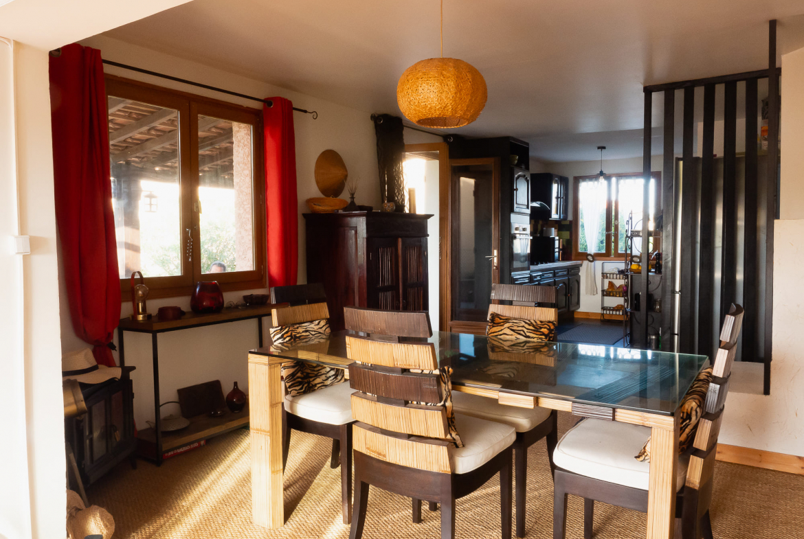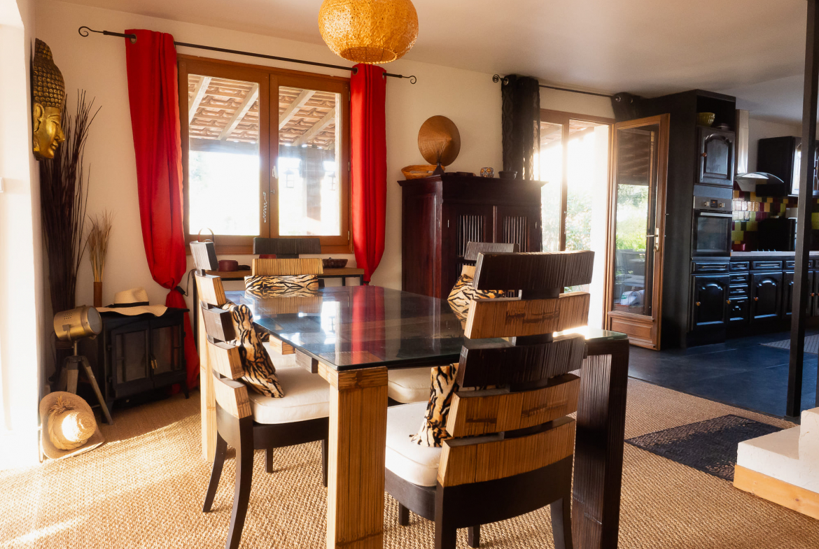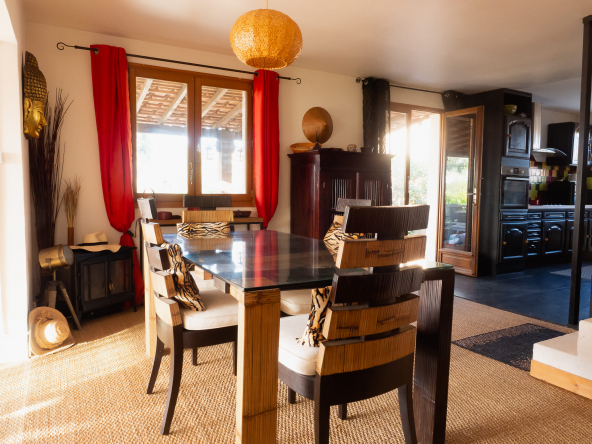 • Große überdachte Holzterrasse mit direktem Zugang zur Küche, ideal für Ihre Sommermahlzeiten,