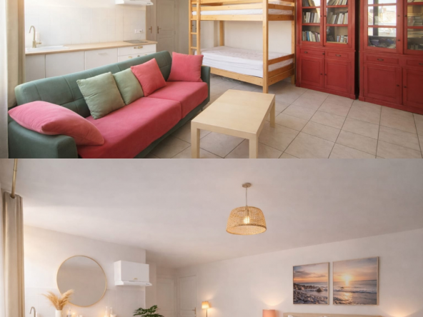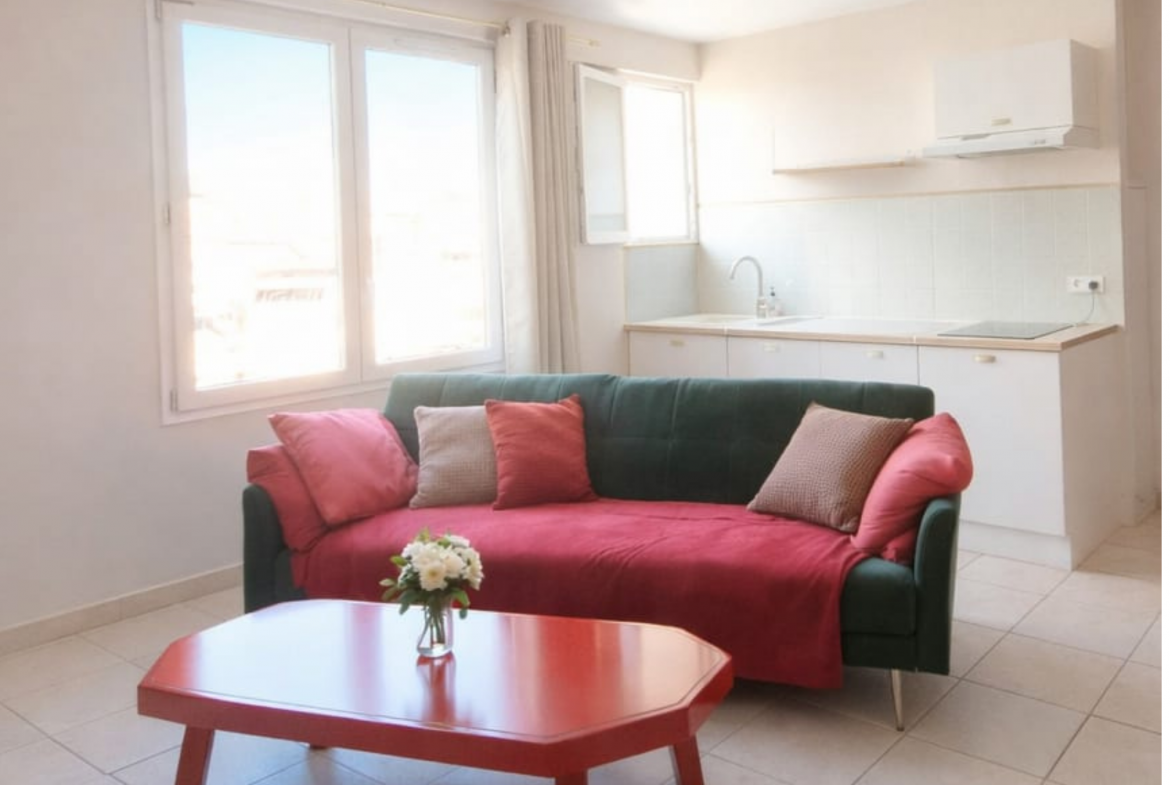 Mitten im historischen Zentrum von Agde, in einem charmanten Stadthaus, befindet sich dieses helle Studio mit ca. 36 m² Wohnfläche im 3. und obersten Stockwerk.